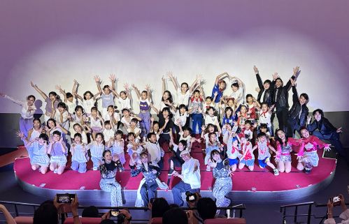 WiZの小学校でのマジック教室&デモストレーション公演を見て、子供達が自ら舞台にチャレンジしたいと保護者に願って参加するチャレンジキッズシーン。